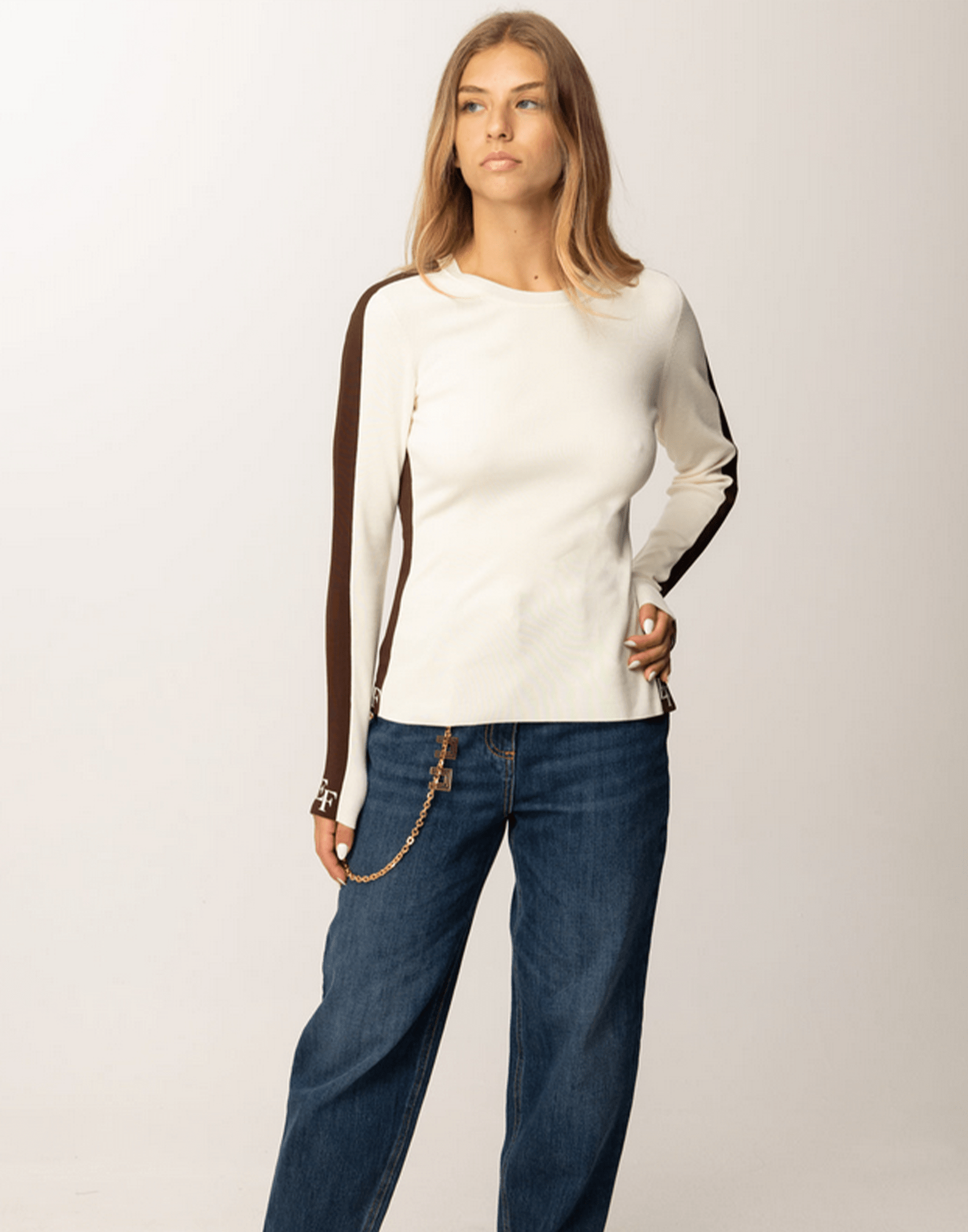 ELISABETTA FRANCHI Maglia in viscosa con bande lucide colore MILK/COFFEE