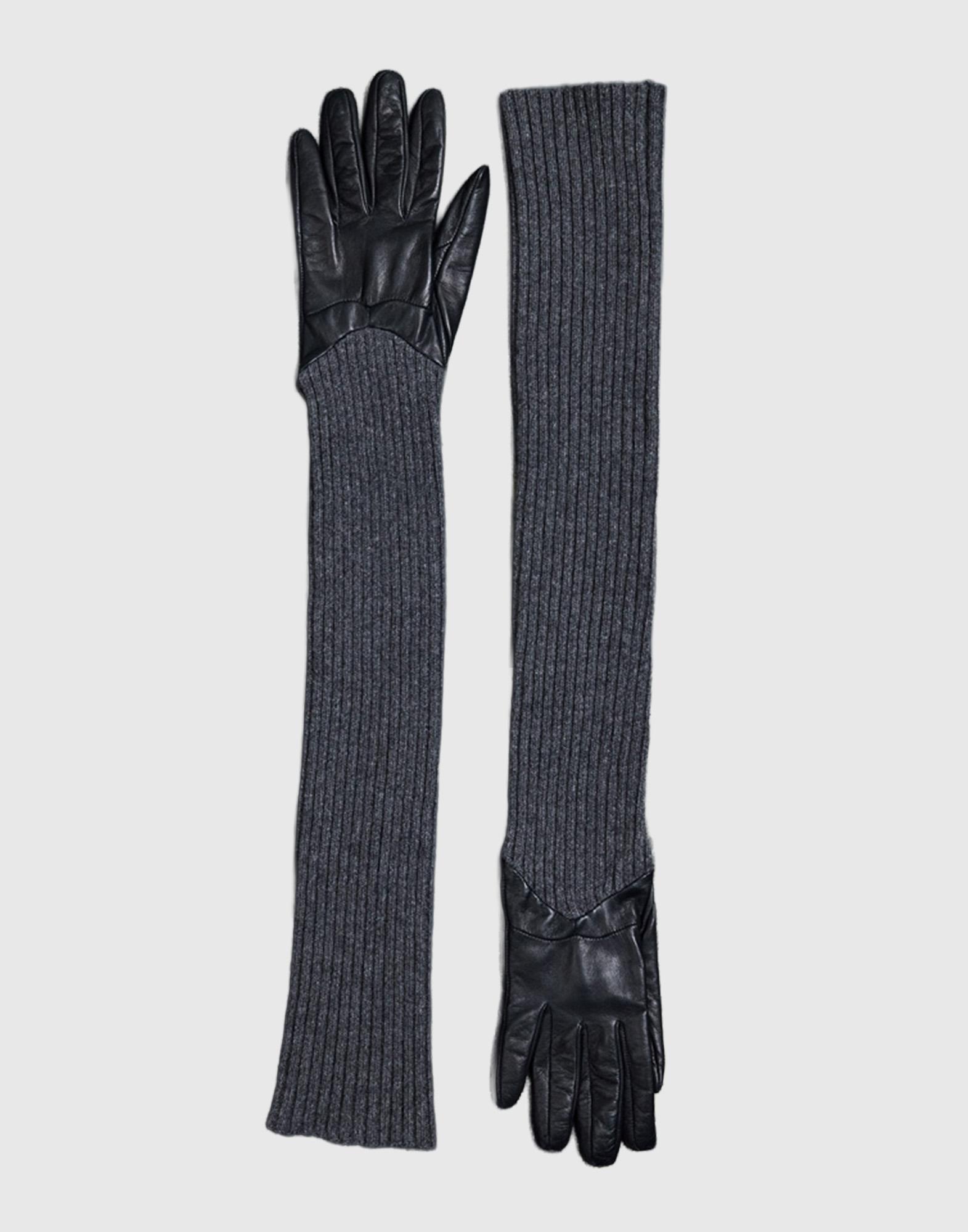 DEL CORE Guanti beetle in pelle e cashmere colore GRIGIO/NERO