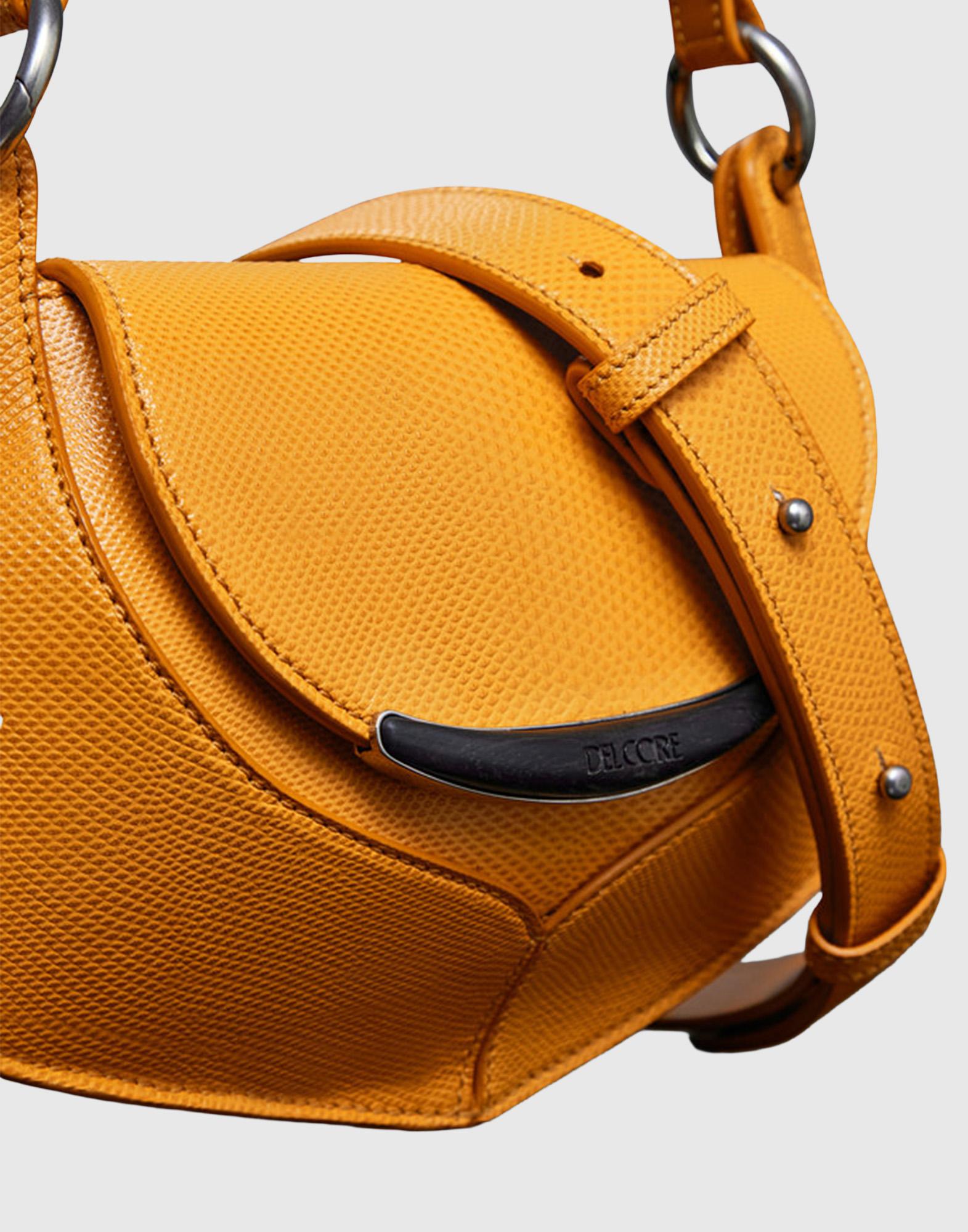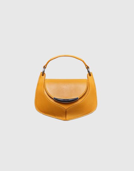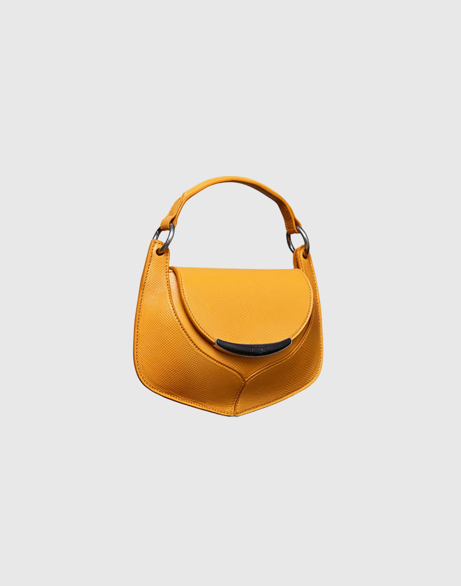 La Baby Beetle è caratterizzata dalla piastra logata a forma di mezza luna che accompagna la chiusura della borsa. Presentata nella sua versione baby, viene accessoriata da una tracolla removibile con regolazione a gemello per un uso crossbody e versatile.
