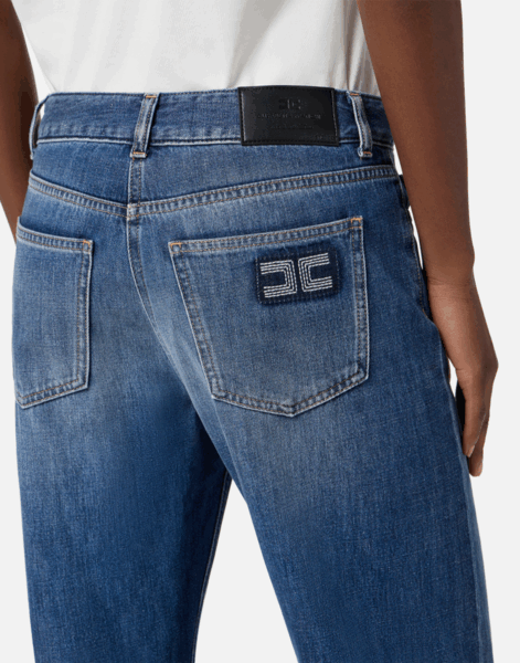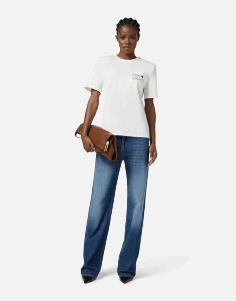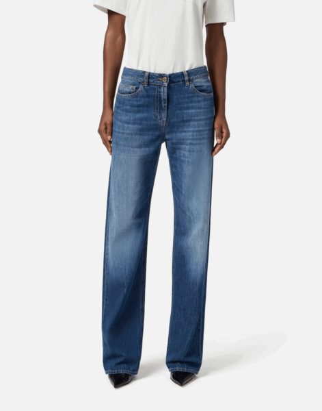 Pantaloni a palazzo in denim con costruzione a vita bassa e gamba ampia. Ispirati agli intramontabili modelli cinque tasche, hanno dettagli ricamati con logo sulle tasche posteriori. Vestibilità regular.