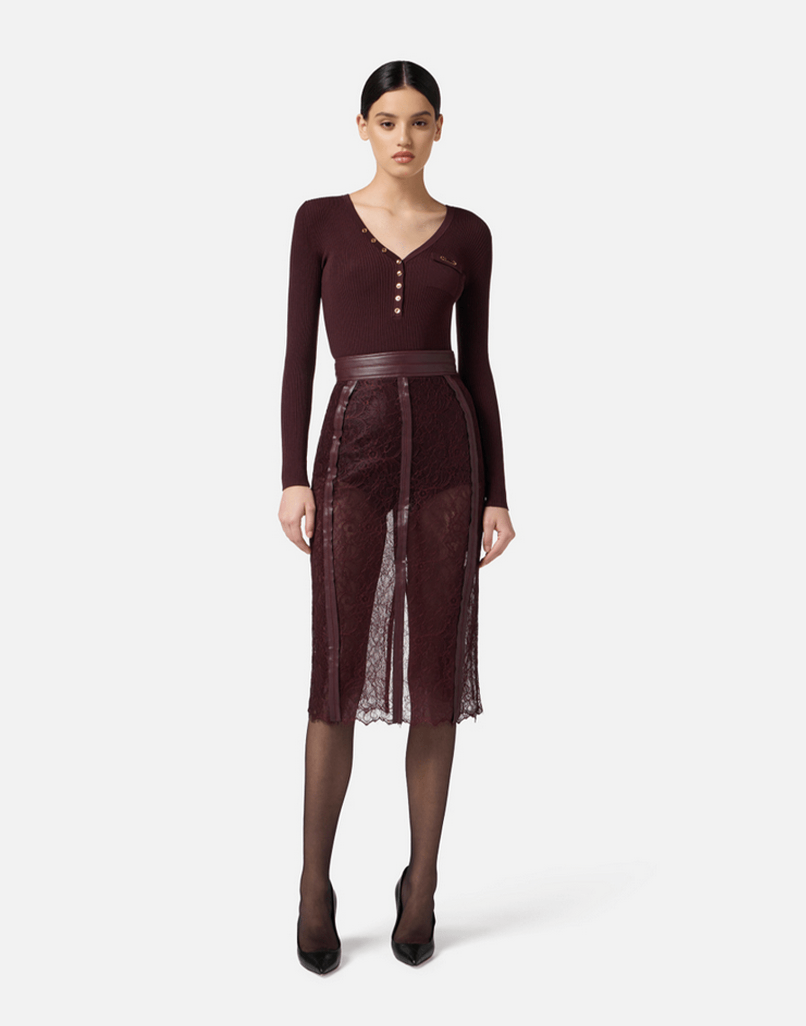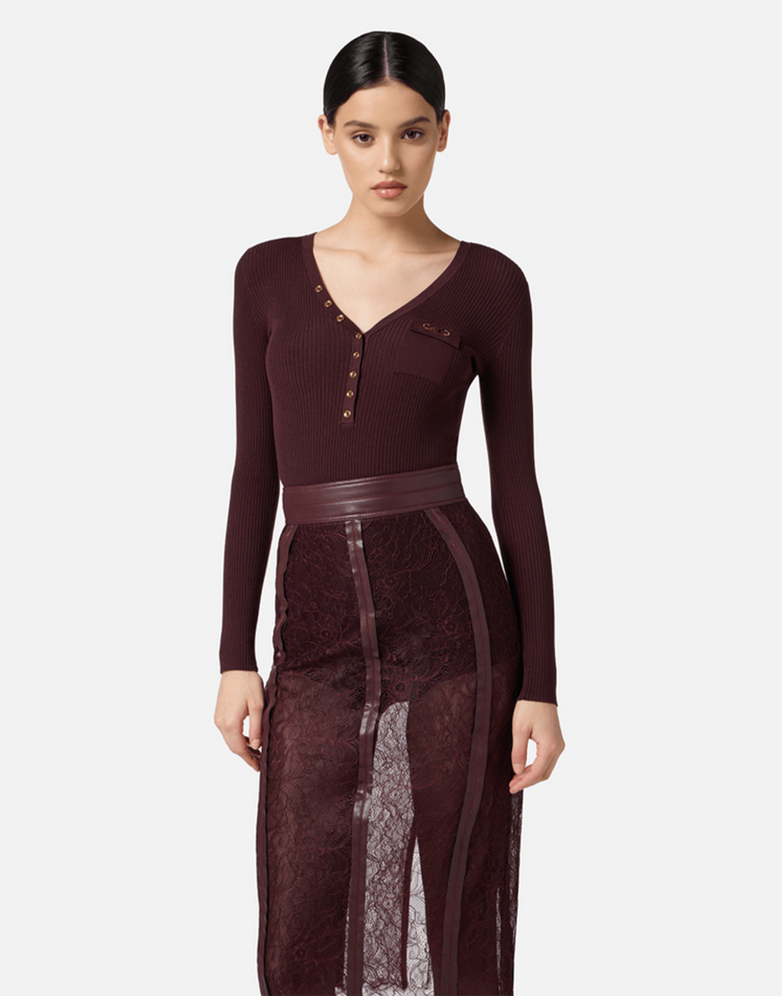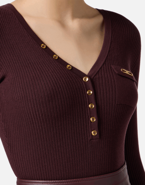 ELISABETTA FRANCHI Maglia a costine con taschino colore MERLOT