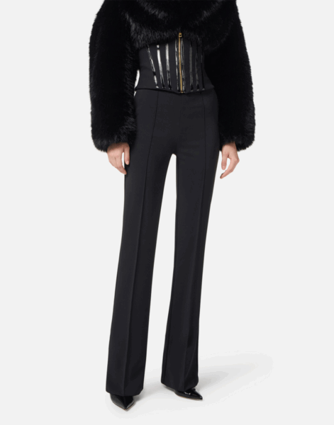 ELISABETTA FRANCHI Pantaloni in crêpe leggero con catena gioiello colore NERO