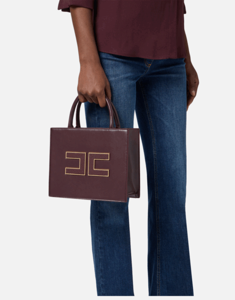 ELISABETTA FRANCHI Tote piccola con logo colore MERLOT