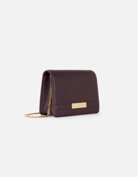 Borsa a tracolla realizzata in materiale sintetico effetto pelle. Dalla shape compatta ed essenziale, ha tracolla con catena groumette in metallo dorato. Impreziosita dalla placca con logo che aggiunge un’ultima nota di luce.