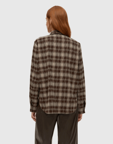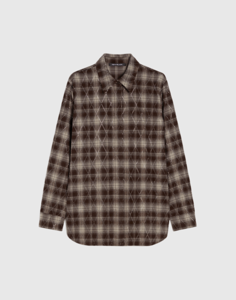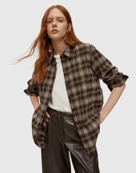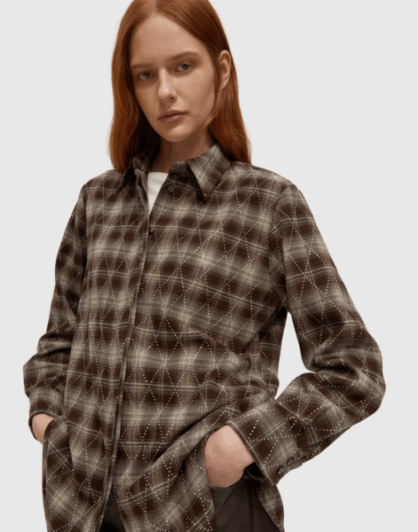 Di ritorno dagli anni Novanta, la camicia in flanella reinventa i classici disegni check con scintillanti motivi a rombi – e aggiunge un inaspettato tocco glam agli stili quotidiani.