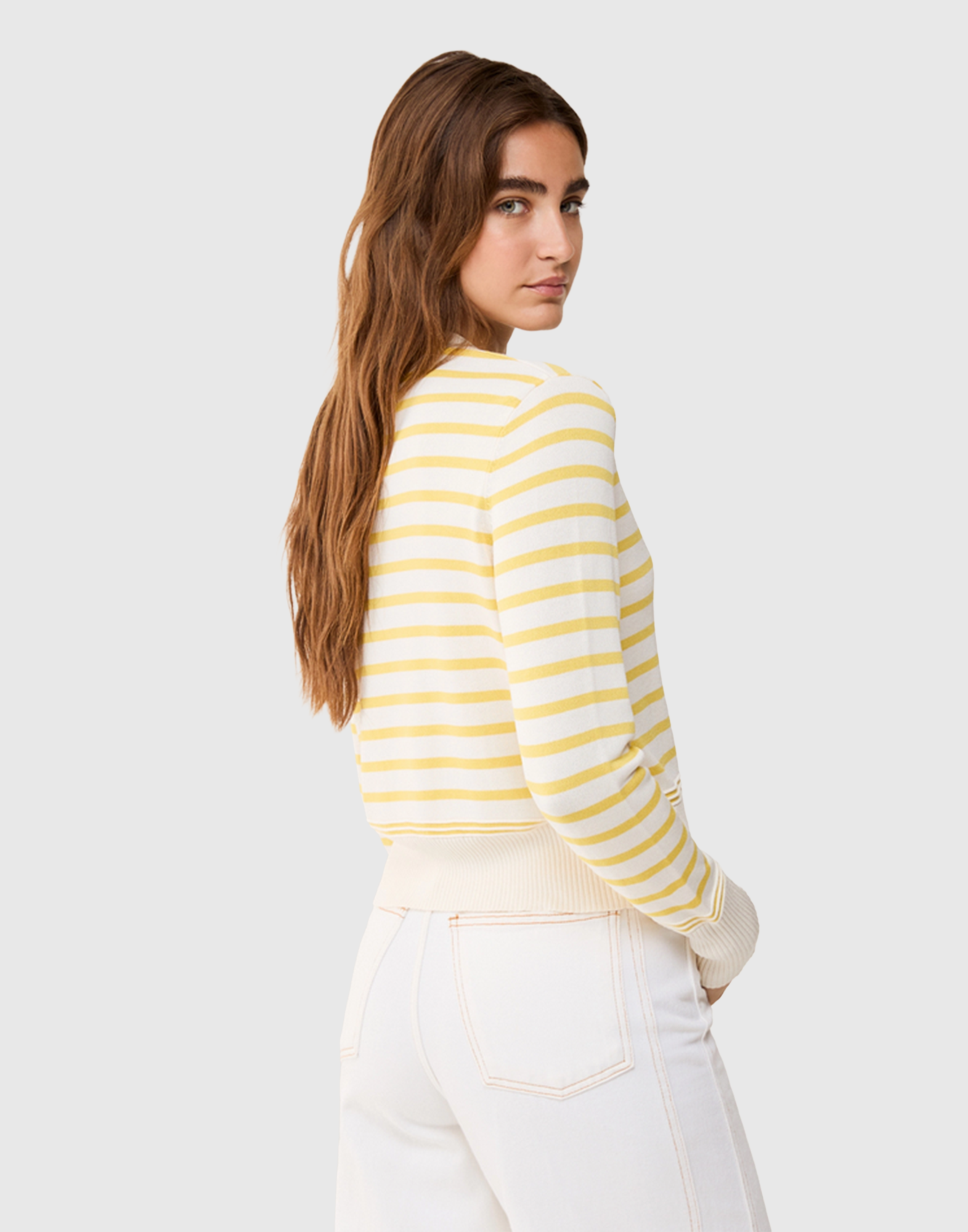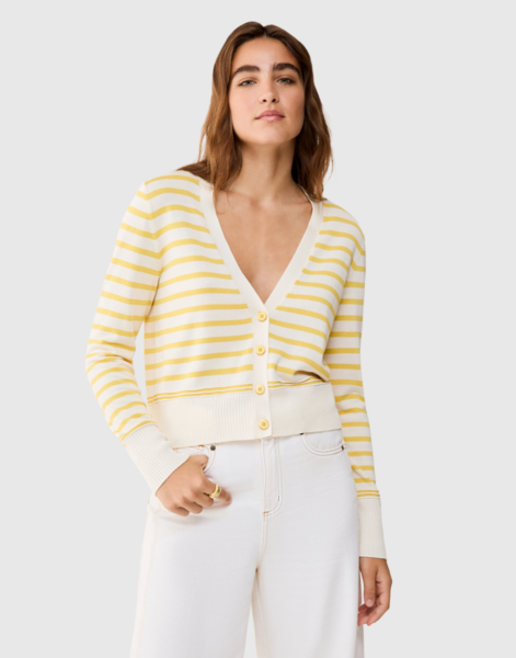 Per accompagnare il passaggio verso giorni più caldi, questo cardigan unisce la freschezza naturale del cotone, la fluidità della viscosa e un tocco lucente di seta.