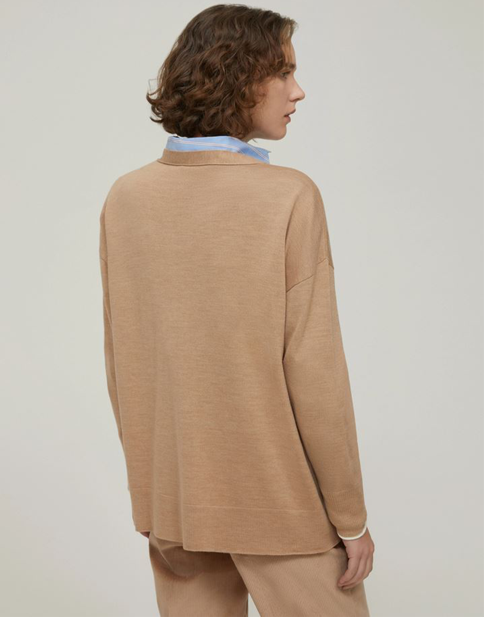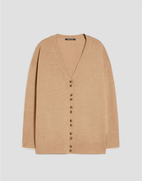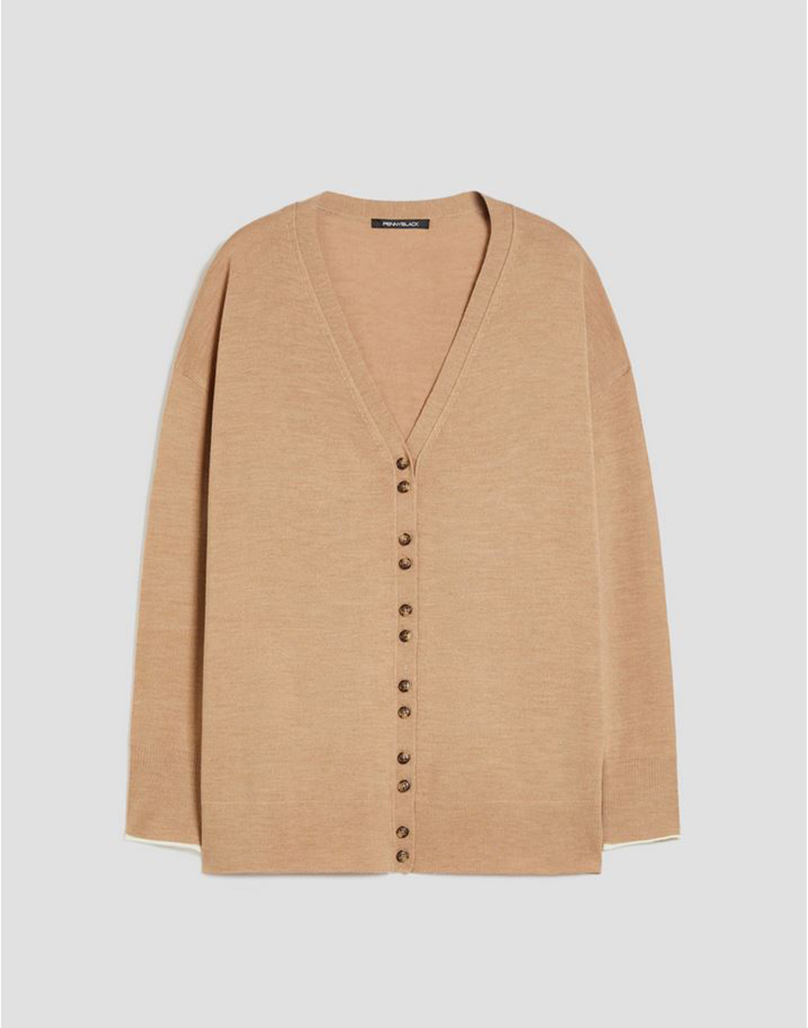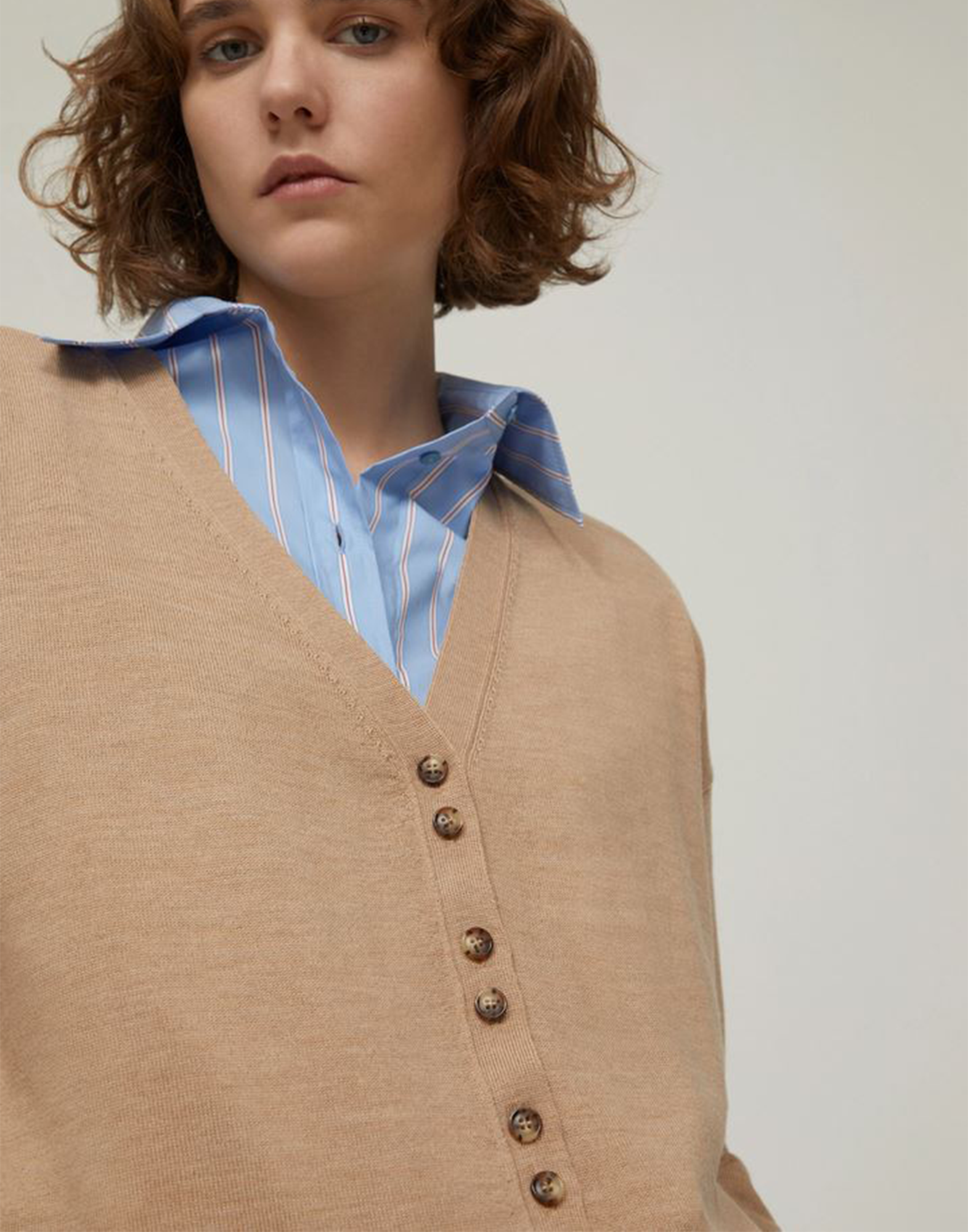 Caratterizzato dai bottoni disposti a coppie, il cardigan in pura lana sottile ha le proporzioni giuste per creare look multistrato che accompagneranno con stile il passaggio verso giornate più fresche.