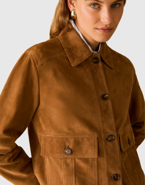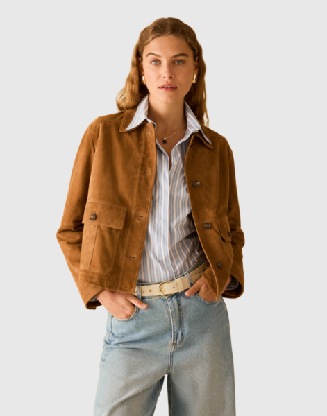 Gusto autentico, finish morbido e proporzioni studiate per sovrapporsi a ogni look: questa giacca in pelle scamosciata darà una svolta al guardaroba quotidiano.