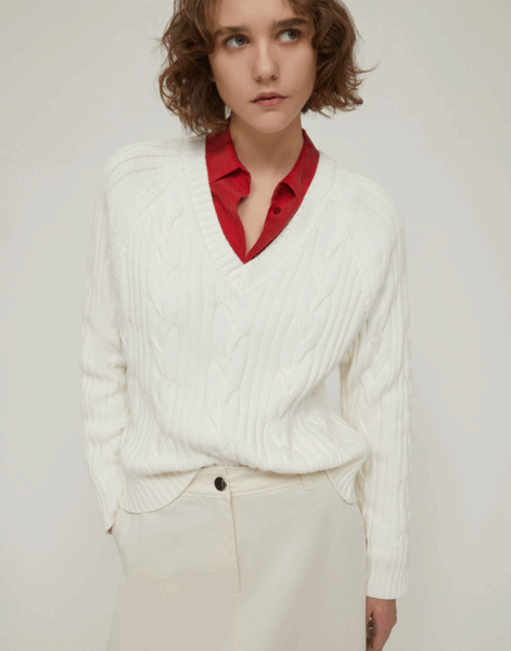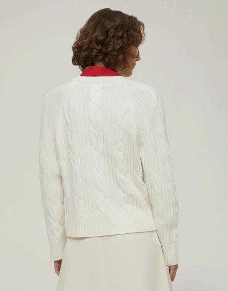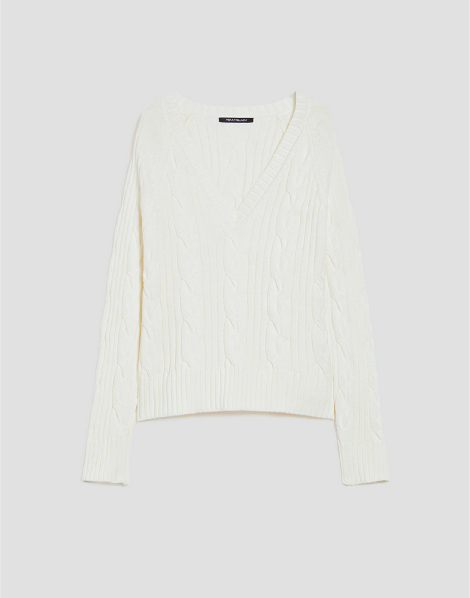 Classico contemporaneo, il pull in blend di cotone a trecce e coste sarà perfetto a ogni cambio di stagione, indossato a pelle o sulla camicia.