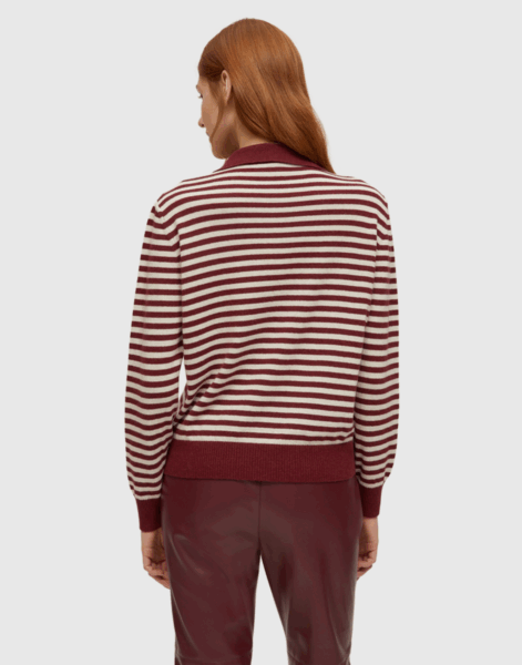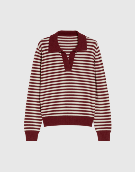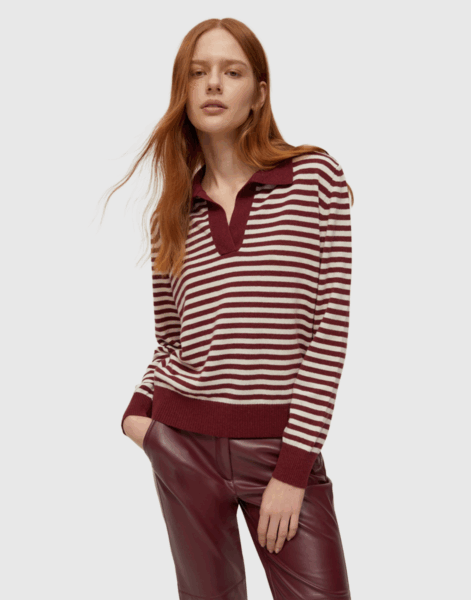 Moderna rilettura di un classico dello stile preppy, la polo in maglia a righe sarร perfetta sotto al blazer, sui jeans e in infiniti mix & match quotidiani, per dare il giusto ritmo al look.