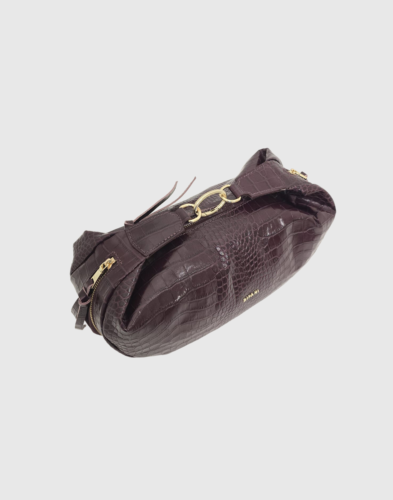 Borsa a mano con tracolla regolabile, chiusura zip, taschino interno con zip, tasca portacellulare, vera pelle effetto cocco, accessori oro chiaro