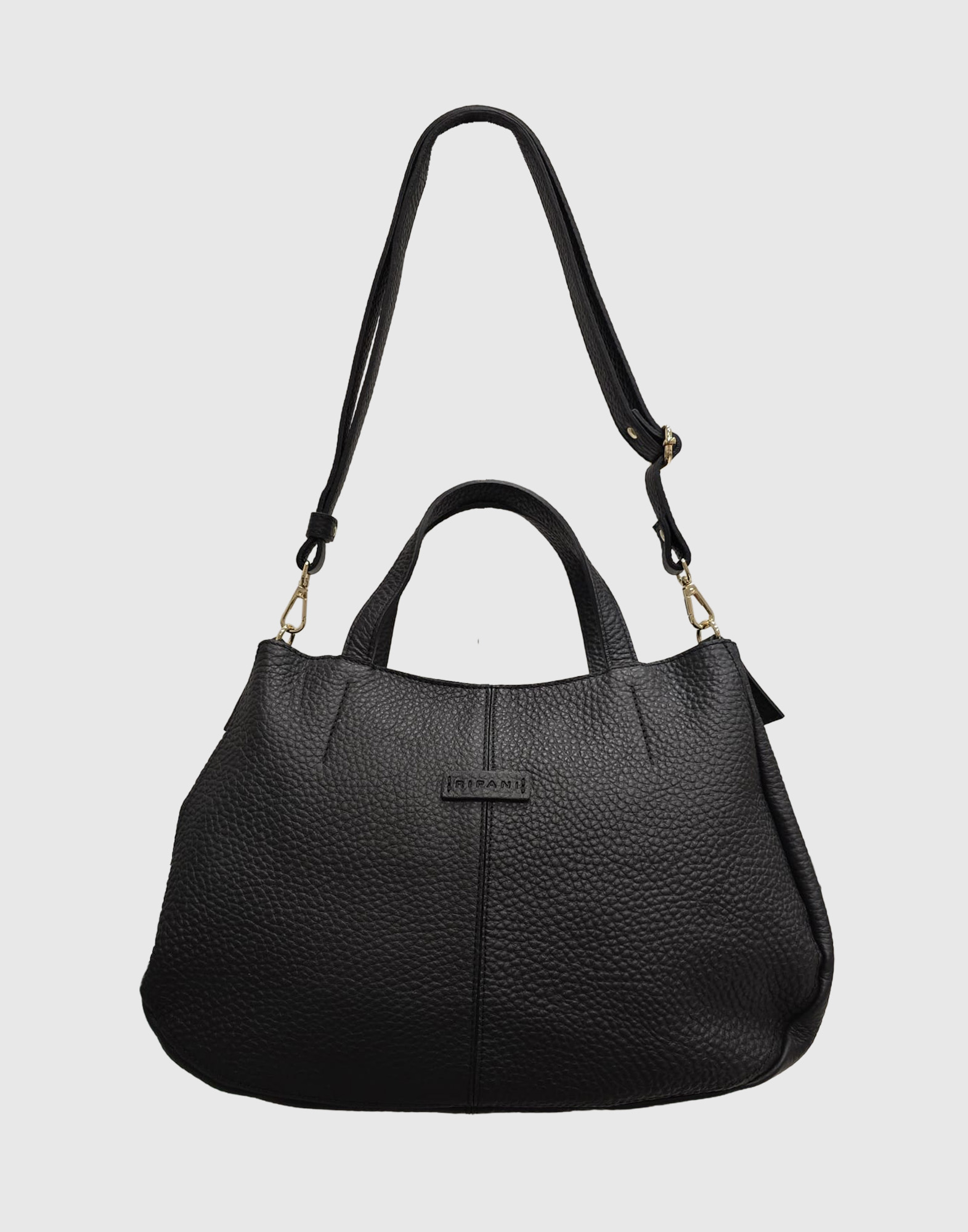 Borsa a mano con tracolla regolabile, chiusura zip e magnete, taschino interno con zip, tasca portacellulare, vera pelle effetto bufalo, accessori oro chiaro