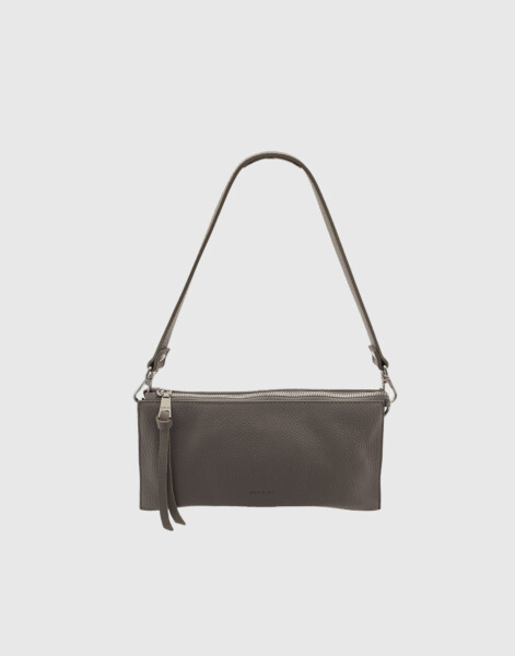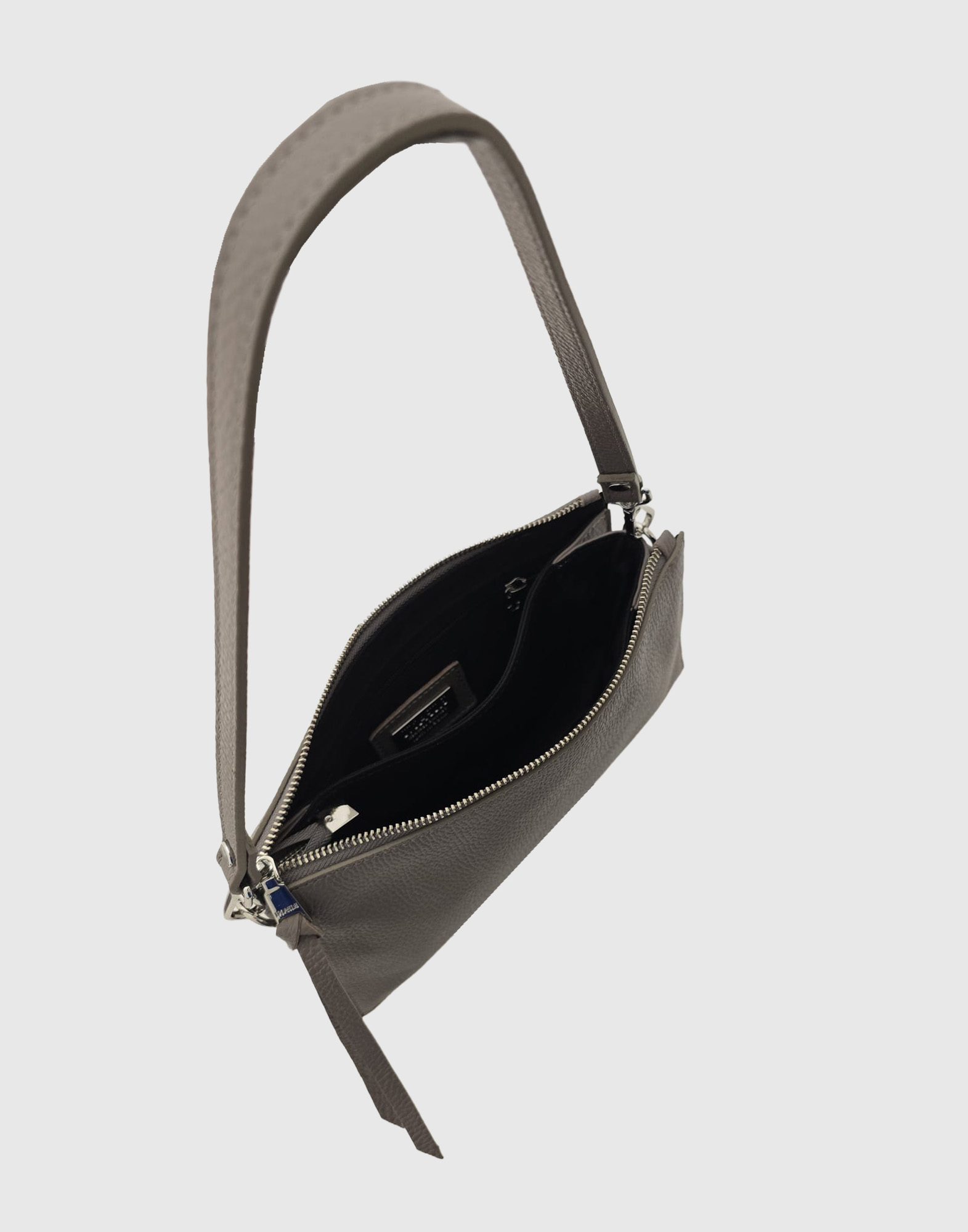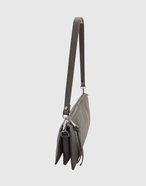 Borsa a spalla con tracolla regolabile, chiusura con zip, triplo scomparto, taschino interno con zip, portacellulare interno, vera pelle effetto cervo, accessori nickel